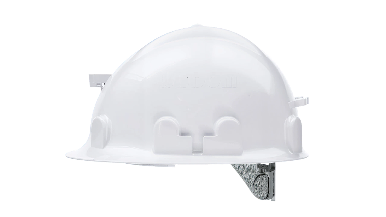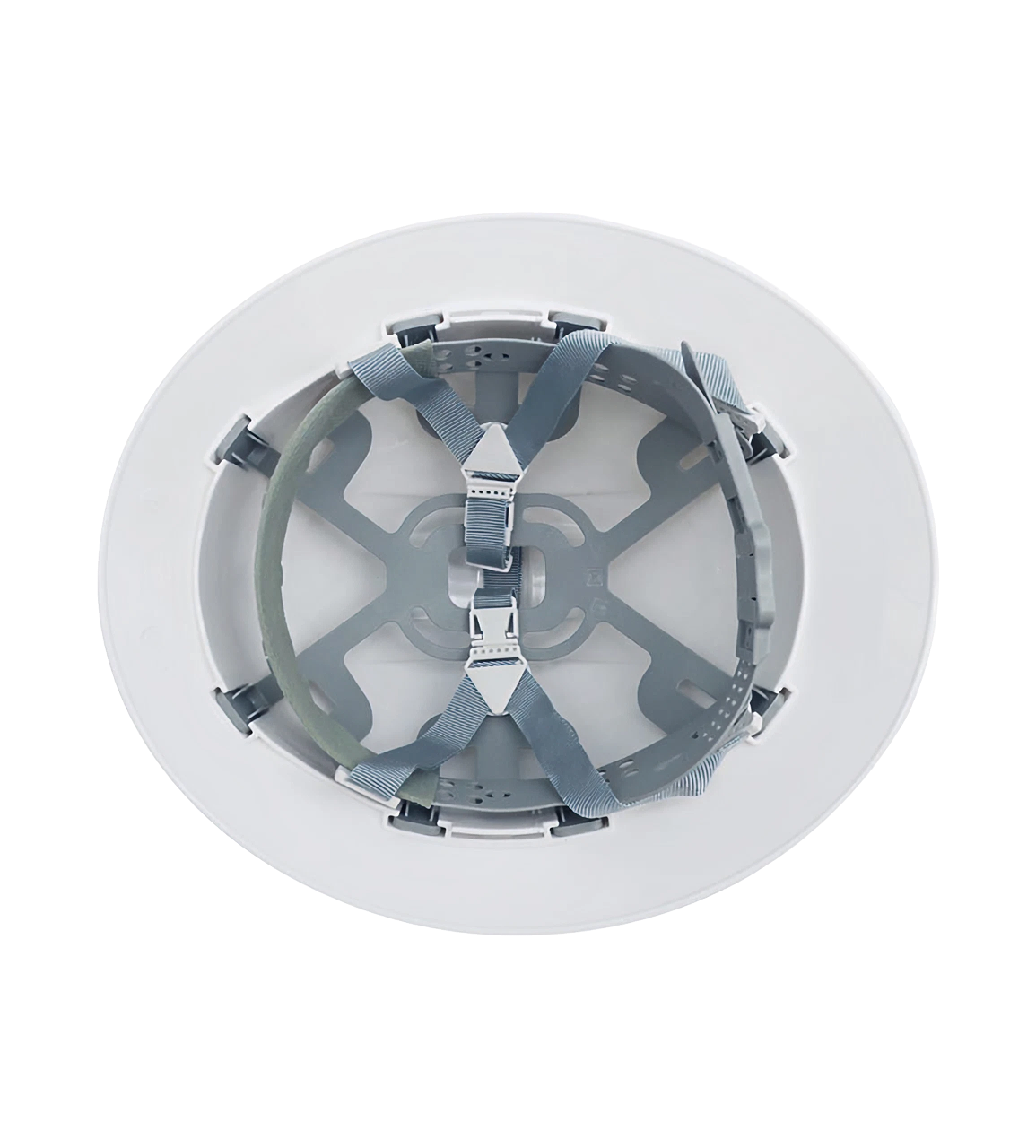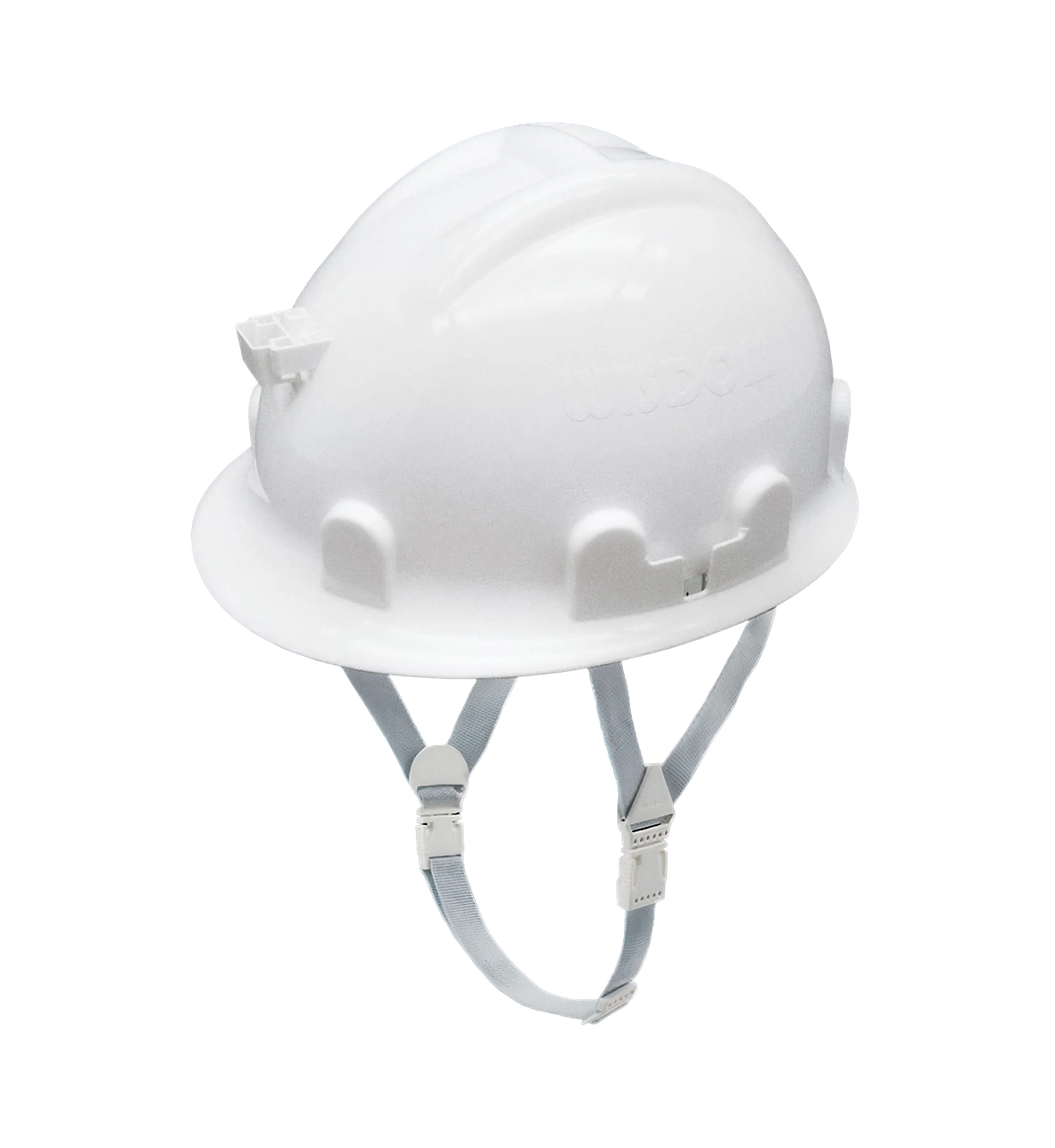 A dome-style industrial safety helmet built for demanding worksites, with ANSI-rated protection, adjustable sizing, and integrated mounting for headlamps and rear accessories.