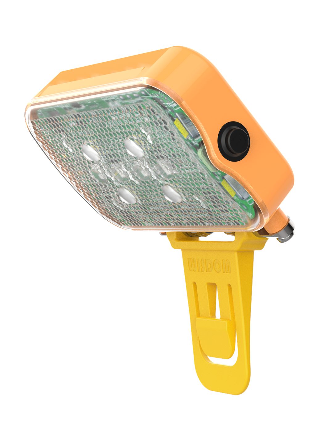 A compact industrial safety headlamp designed for MRO work, helmet mounting, and high-visibility signaling in demanding environments.