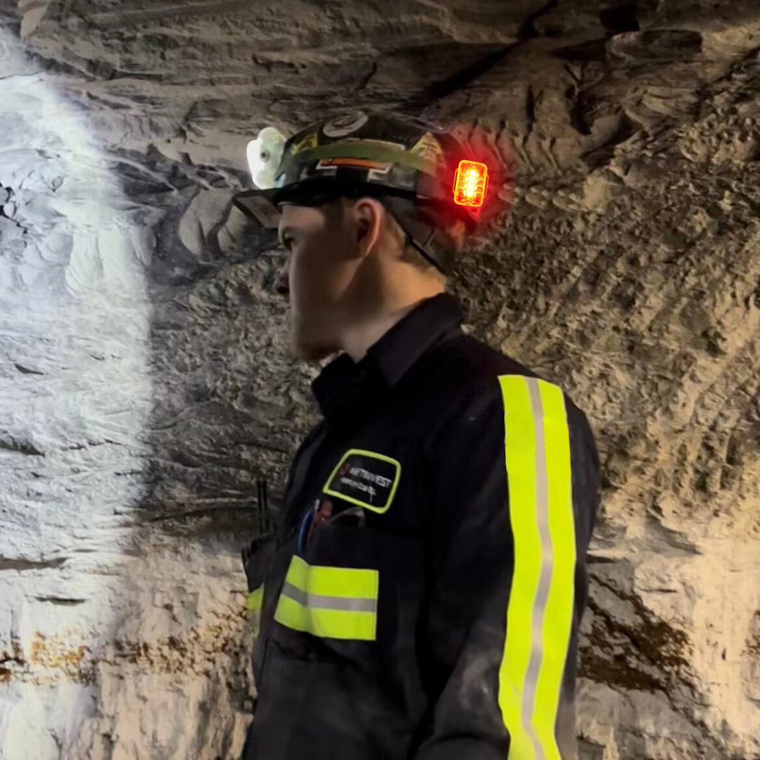 A rugged personal safety strobe light built for mining and emergency visibility, with long flash runtime and a compact rechargeable design.